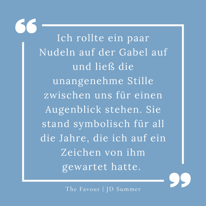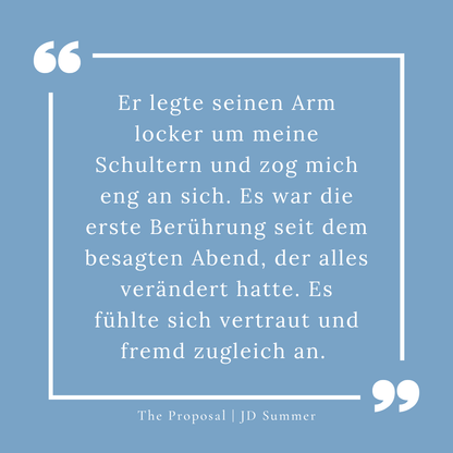 Oh wow 😍 was für eine wunderschöne Liebesgeschichte, ich bin hin und weg, von der ersten bis zur letzten Seite hat mich dieses Buch gefesselt. Ich hab es auch an einem Tag durchgelesen und wollte nicht mehr aufhören zu lesen. 🥰🥰❤️🥰🥰 Ich liebe die Schreibweise von J.D.Summer, sie zieht dich förmlich mit hinein. Jetzt bin ich gespannt auf den nächsten Teil aber das dauert noch.